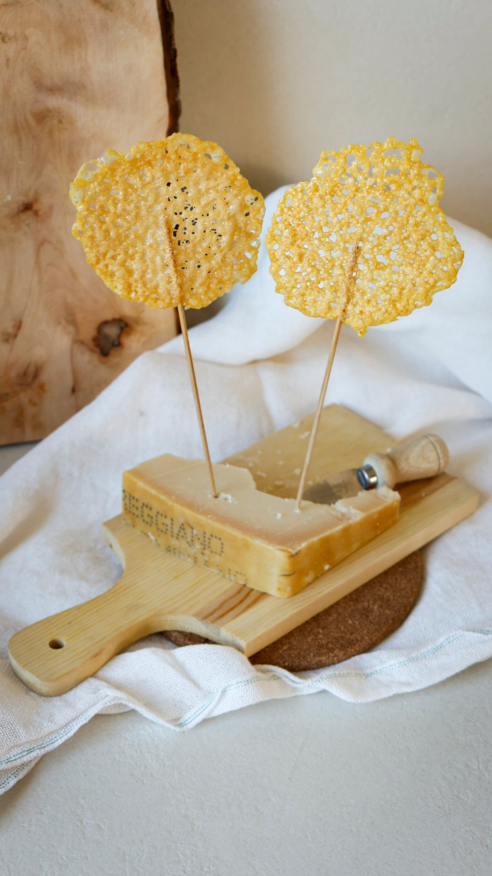 - Den Parmigiano Reggiano reiben und das Backpapier auf ein Backblech legen.